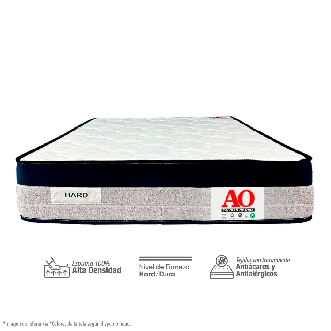 Disfruta un descanso firme y confortable con el Colchón AO Hard Foam, diseñado con núcleo 100 % de espuma de alta densidad que brinda soporte ideal para una postura correcta al dormir. Cuenta con 25 cm de altura, tela tejido de punto con tratamientos antiácaros y antialérgicos, y resistencia para mayor durabilidad. Cómpralo ahora en Tienda AO y renueva tu descanso con calidad.