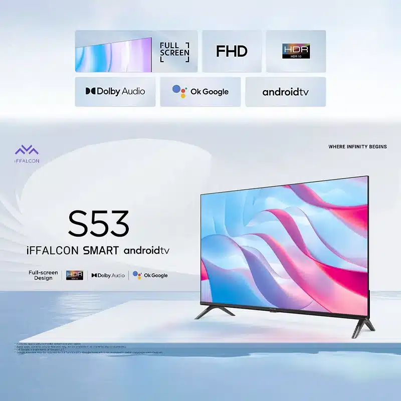 El iFFALCON 43S53 es un televisor de 43 pulgadas con resolución Full HD (1920 × 1080), ideal para espacios medianos como salas o habitaciones. Ofrece compatibilidad con HDR10, lo que mejora el contraste y la reproducción de colores en contenido compatible. Su diseño de pantalla casi sin bordes brinda una apariencia moderna y una experiencia visual más inmersiva. Incorpora el sistema operativo Android TV, que permite acceder fácilmente a aplicaciones, Fabricado por iFFALCON, una marca asociada a TCL, combina buena calidad de imagen con un precio accesible y garantía de hasta 2 años.