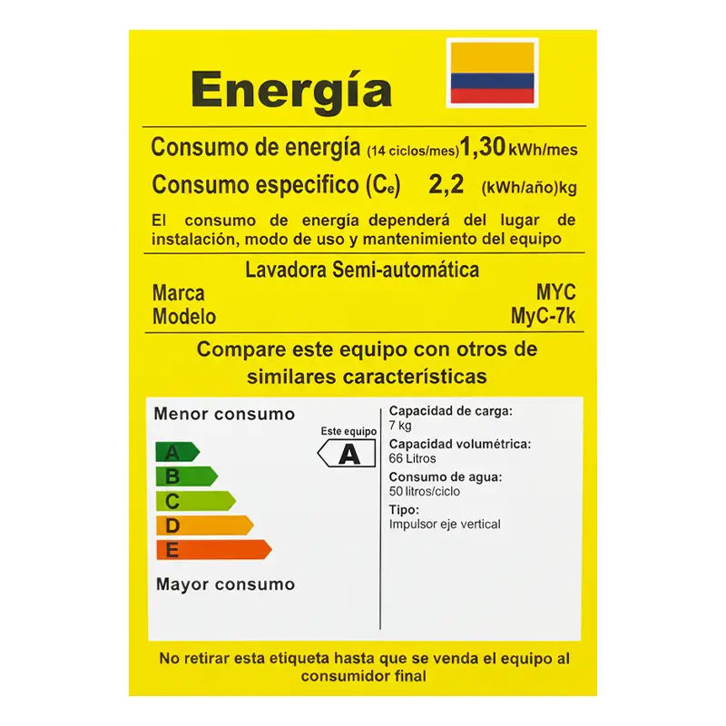 Descubre la comodidad y eficacia de la lavadora semi-automática de doble tina de MYC (Modelo aproximado MYC-7K). Diseñada para optimizar tu tiempo y recursos, este electrodoméstico combina una tina de lavado y una de centrifugado. Cuenta con un panel de control manual de fácil uso, gestionado por perillas que permiten seleccionar el ciclo y el tiempo de lavado. Su diseño compacto en color blanco se adapta a cualquier espacio, y su certificación con la etiqueta de eficiencia energética de Colombia garantiza un consumo responsable. Ideal para quienes buscan un lavado potente, rápido y con control total sobre el proceso.