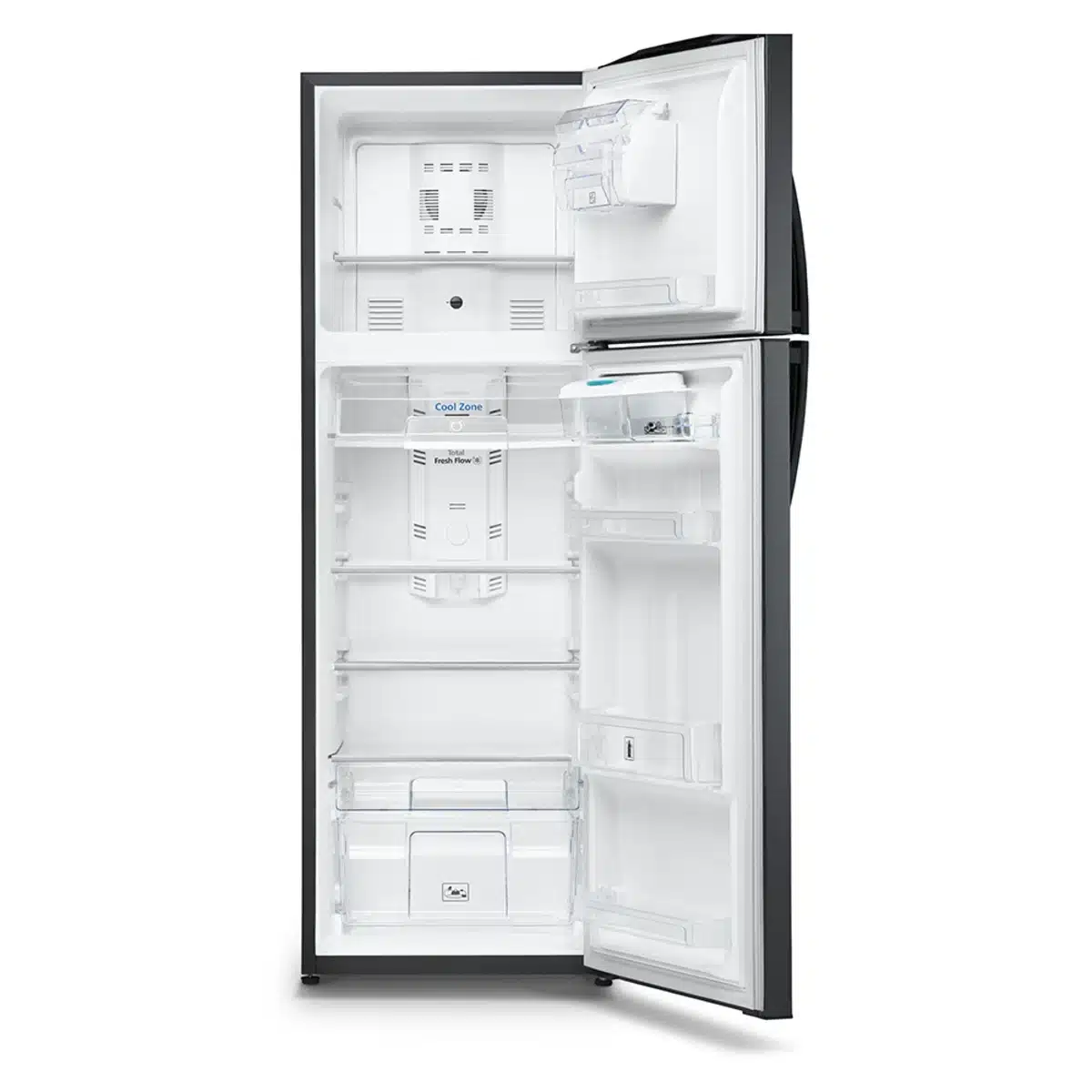 Disfruta de la frescura y el diseño moderno de la nevera Mabe No Frost de 313 L. Su compresor Eco Advance y gas R600a ofrecen hasta 67 % de ahorro de energía. Mantén tus alimentos por más tiempo con el sistema Total Fresh Flow. Incluye dispensador de agua. bandejas de vidrio templado y elegante acabado Black Steel que combina estilo y durabilidad.